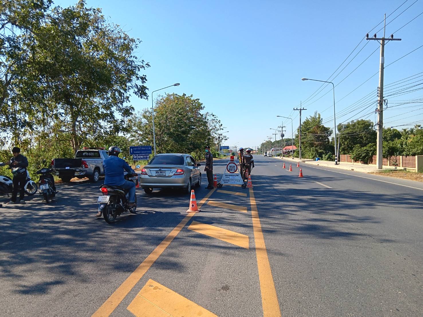 พ.ต.ท.สมหมาย สุขคง สวป.สภ.ค่ายบางระจัน หัวหน้าจุดตรวจ พร้อมกำลังสายตรวจจราจรกวดขันวินัยจราจร บริเวณแยกพิกุลทอง ถนนสิงห์บุรี-สุพรรณ อ.ค่ายบางระจัน จ.สิงห์บุรี