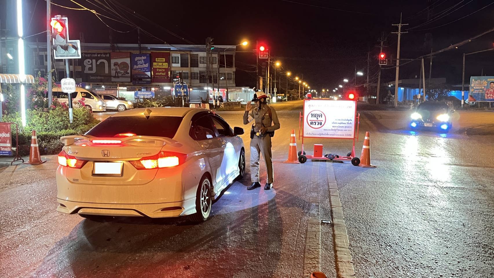 การตั้งจุดตรวจกวดขันวินัยจราจร 16 เมษายน 2568 โดย admin / ข่าวประชาสัมพันธ์,ข่าวกิจกรรม วันที่ 16 เม.ย. 2568. เวลา 19.00 -20.30 น ภายใต้การอำนวยการของ พ.ต.อ.อิทธิโชติ ไชยมงคล ผกก.สภ.ค่ายบางระจันพ.ต.ท.วีระศักดิ์ กรอบสนิท รองผกก.ป สภ.ค่ายบางระจัน ผู้ควบคุมการปฏิบัติ พ.ต.ท.สมหมาย สุขคง สวป.สภ.ค่ายบางระจัน กำลังปฏิบัติประกอบด้วย สายตรวจรถยนต์ สายตรวจจราจร รวม 7 นาย ตั้งจุดตรวจกวดขันวินัยจราจร และจุดตรวจวัดแอลกอฮอร์ บริเวณสี่แยกท่าข้าม ต.โพสังโฆ อ.ค่ายบางระจัน จ.สิงห์บุรี ผลการปฎิบัติ จับกุมผู้ต้องหาเมาแล้วขับ 1 ราย FacebookFacebookXTwitterLINELine