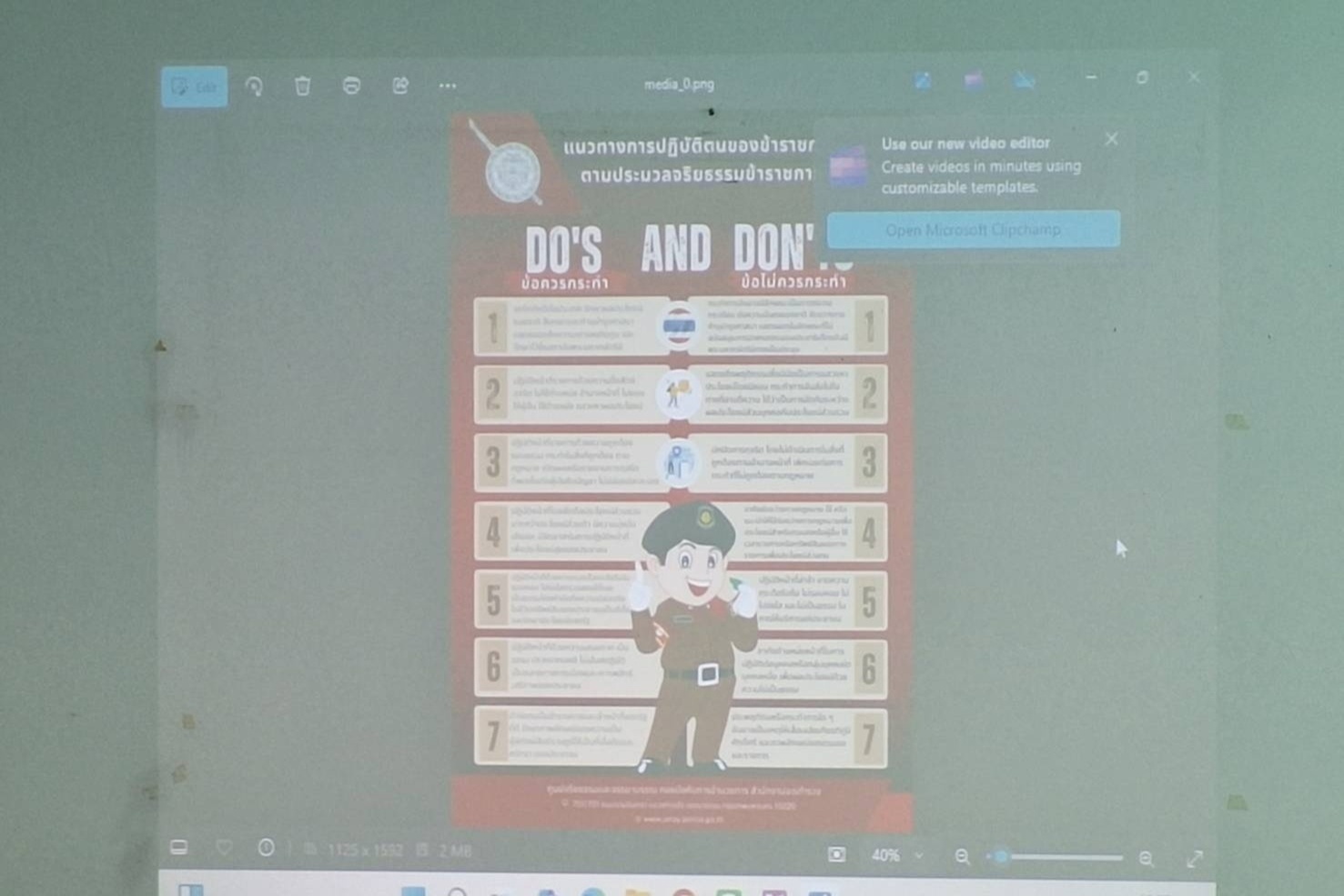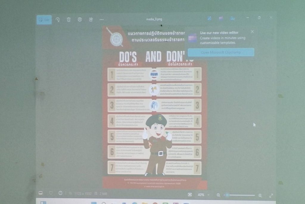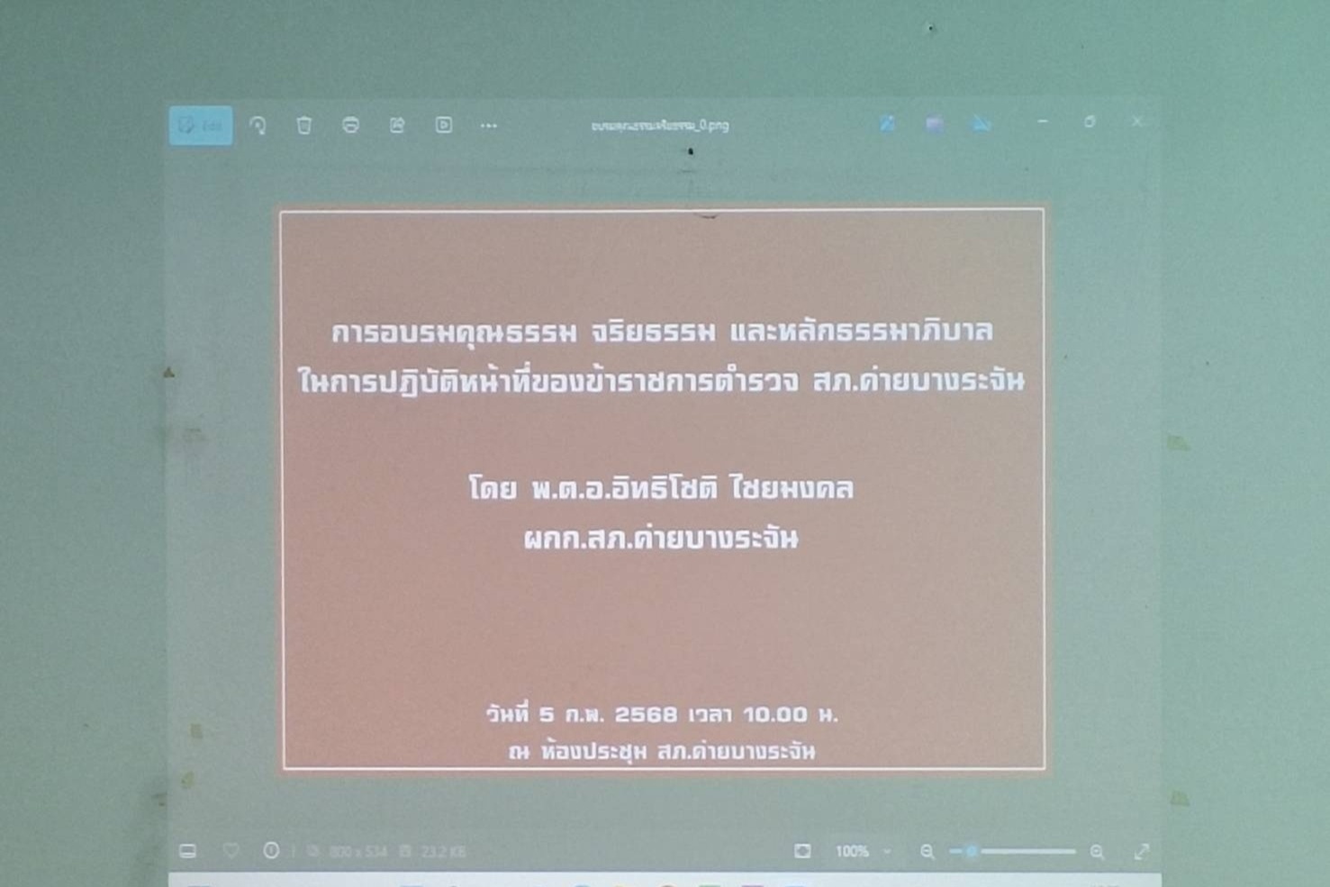 กิจกรรมการมีส่วนร่วมของหัวหน้าสถานีตำรวจ การอบรมคุณธรรม จริยธรรม และหลักธรรมาภิบาลในการปฏิบัติหน้าที่ของข้าราชการตำรวจ สภ.ค่ายบางระจัน