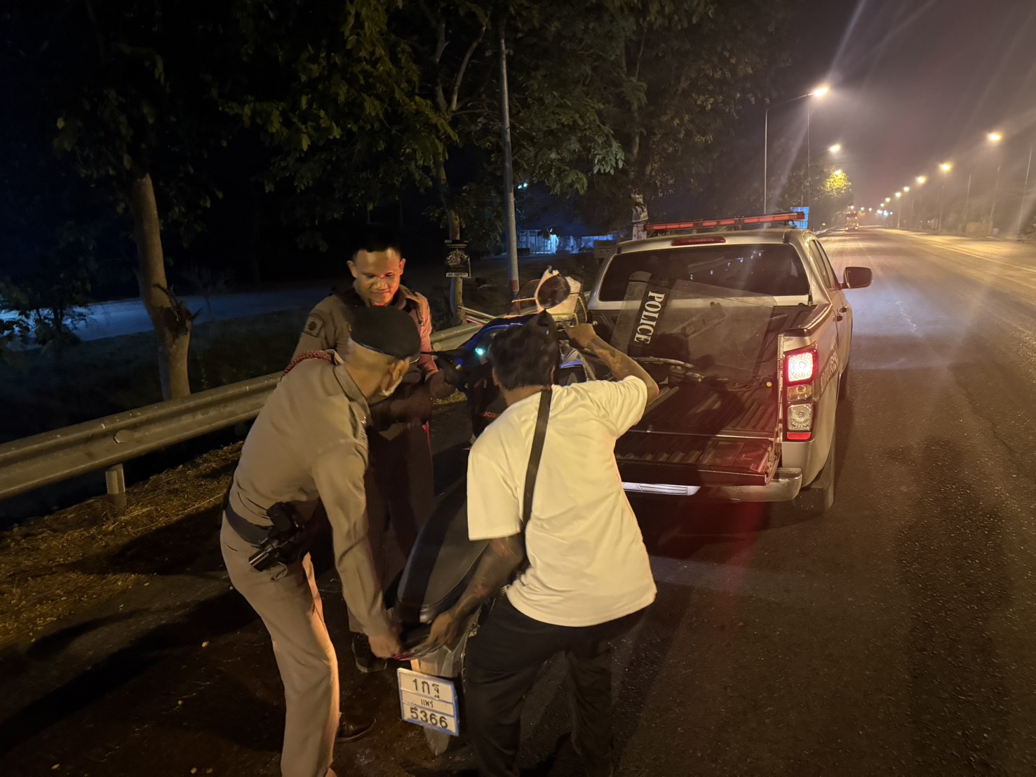 วันที่ 22 เม.ย.2569 เวลา 21.20 น. ร.ต.ต.ประสิทธิ์ คำหริ่ง รอง สว.(ป.)สภ.ค่ายบางระจัน ร้อยเวร 20 พร้อมเจ้าหน้าที่สายตรวจ ให้ความช่วยเหลือประชาชนรถจักรยานยนต์ยางรั่วนำส่งร้านซ่อมรถจักรยานยนต์