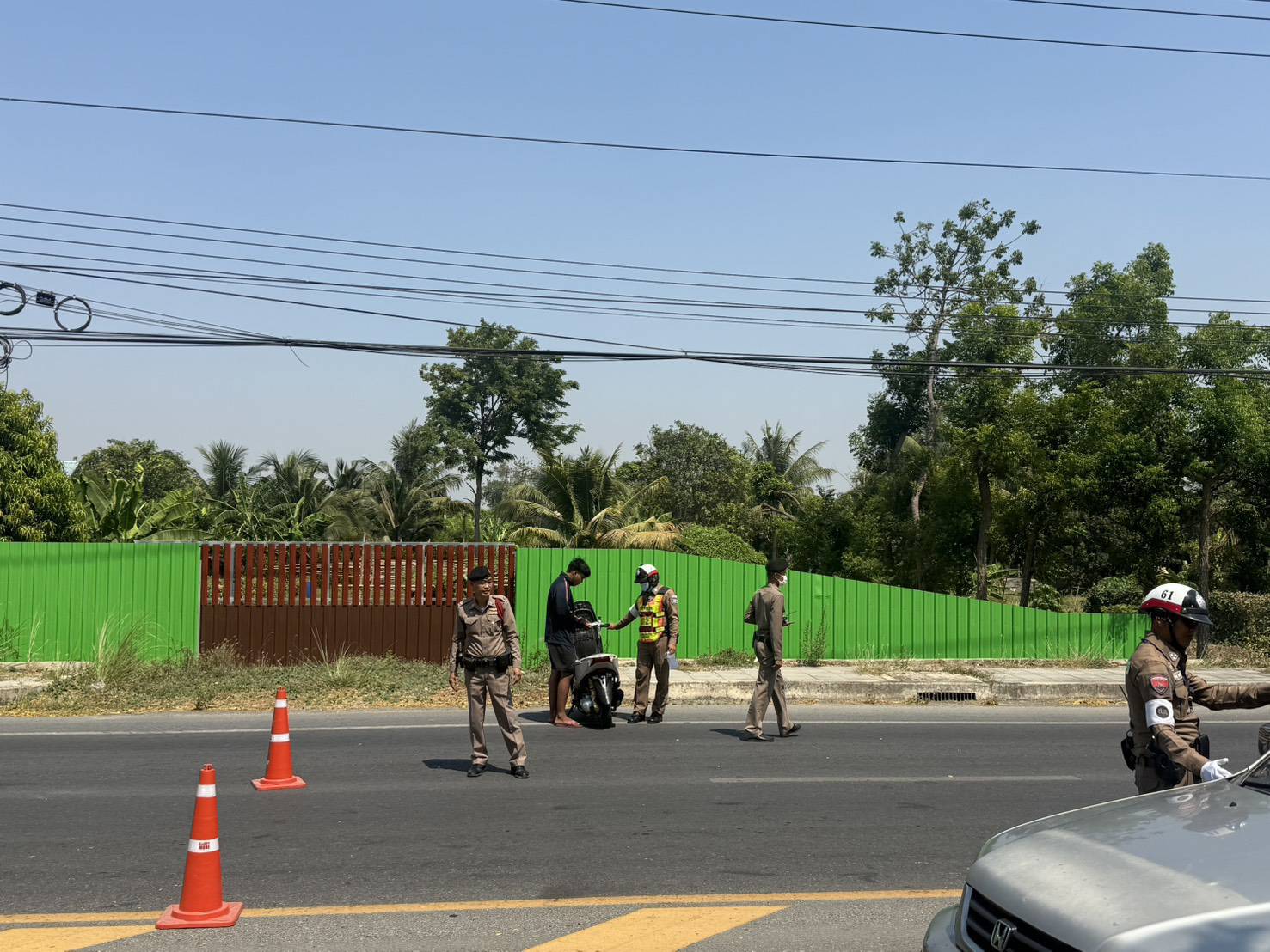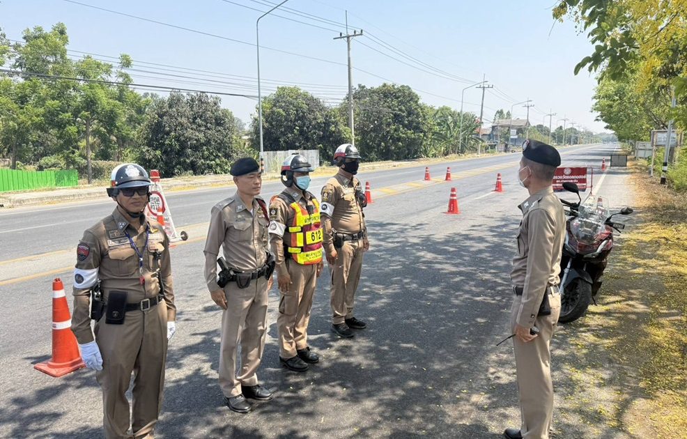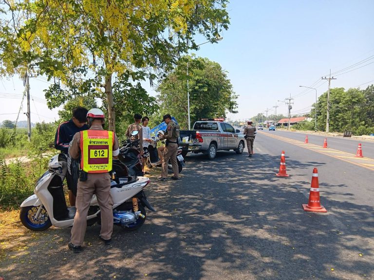 ตั้งจุดตรวจกวดขันวินัยจราจร บริเวณแยกพิกุลทอง ต.ท่าข้าม อ.ค่ายบางระจัน จ.สิงห์บุรี